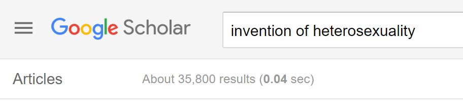 ok, but you have to draw the line somewhere. 35k results on google scholar for invention of heterosexuality?pic.twitter.com/hGPB9VZBTO