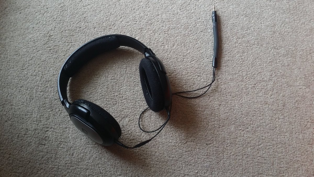 I modded an old pair of headphones to have a much shorter cable. Perfect for my @htcvive :Dpic.twitter.com/eWONyIugo7