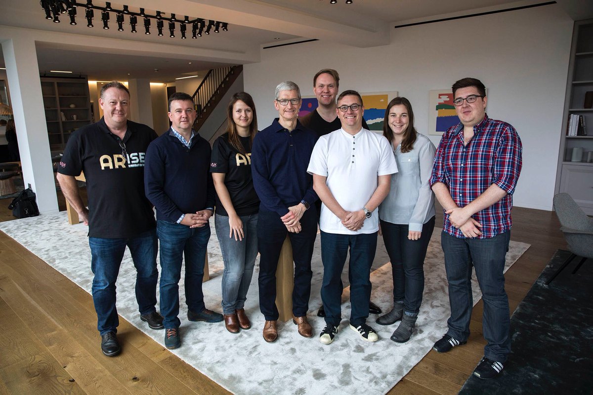 Wonderful to show Tim a preview of our new ARKit game orbu, #orbugamehttps://twitter.com/tim_cook/status/918728591604633600 …