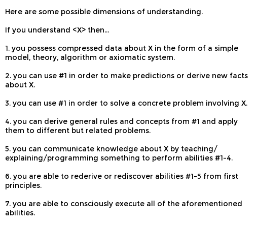 Being able to create something may be a necessary condition for understanding it, but it is not, as all programmers know, a sufficient one.