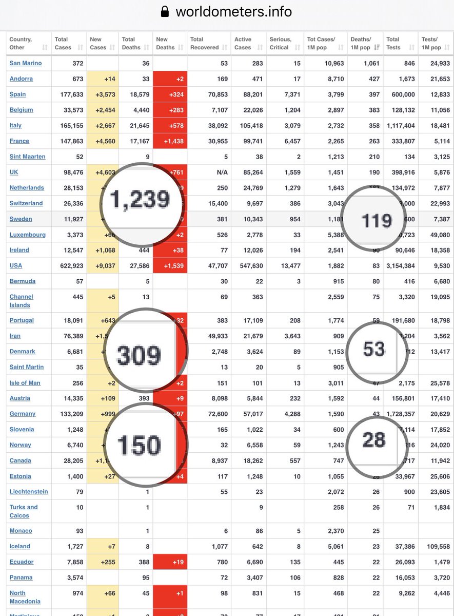 And there is remote work in Sweden & other measures that aren't being discussed widely. It's hard to compare numbers with all the correct factors at the moment beside comparing them with your own. But without wide antibody testing, immunity duration, cure, etc, it's a risky bet..