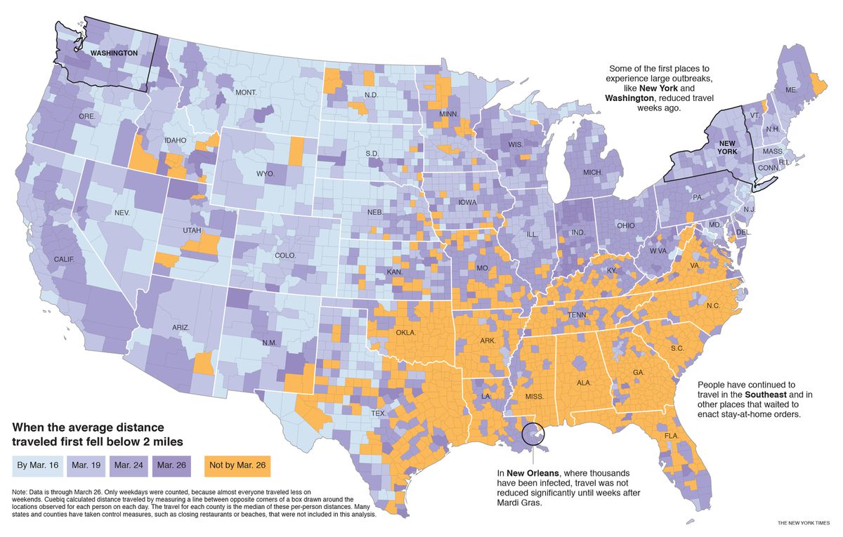 Notice the similarities between these two maps. The first shows when people stopped driving long distances. The second shows current coronavirus hotspots.pic.twitter.com/CnDJ7yIksi