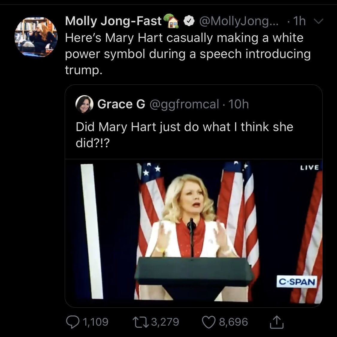 With all things you need to process the moment and use. Too many people in Trump's camp use that as a white power sign. If you are a public figure with experience speaking you know exactly what you are doing. As Hart did in this instance.