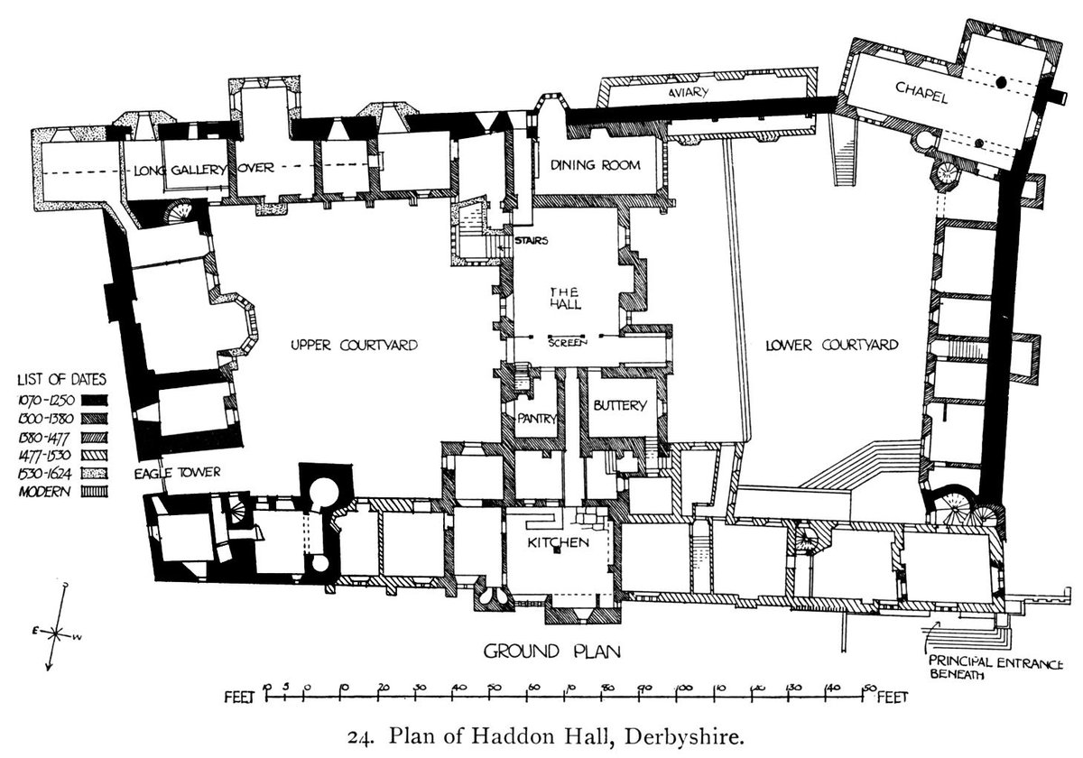 The great hall, Haddon Hall, 14th century. Late medieval great halls had wooden partitions creating a "screens passage" in front of the door, which was usually on the side, to keep the wind from blowing into the room.pic.twitter.com/AyBgx02lru