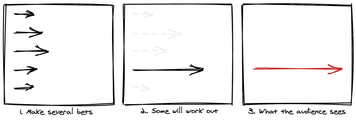 Exactly! Might be a funnel here: 1. Get exposed to 300 things as a kid 2. Get interested in 20-30 of them 2. Get obsessed by 10 of them 3. 3 of them become research topics 4. You make one discovery