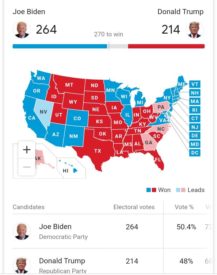 I find it interesting how half the networks are giving Biden 264 as they have called Arizona, whereas the other half for 2 days now are holding out
