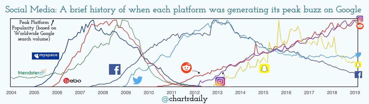 Interesting! Instagram and Reddit look distinctly different than the rest with slow but consistent growth. Wonder why that is.