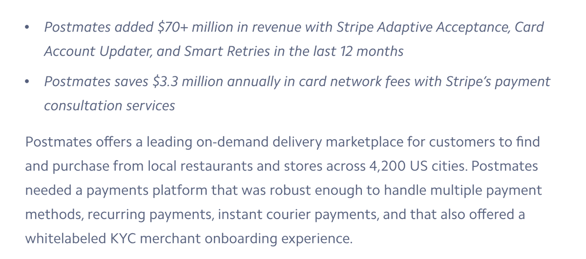 $70M of incremental revenue: @postmates + @stripe.