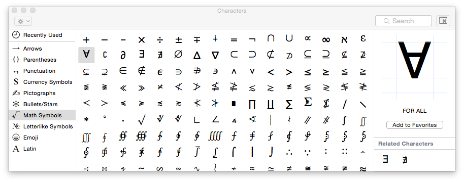 @paulg Use OS X, open the Character Palette, hit Math Symbols. You can search, too, but that character is listed as "For All".Thanks. Twitter will use this to make your timeline better. UndoUndo