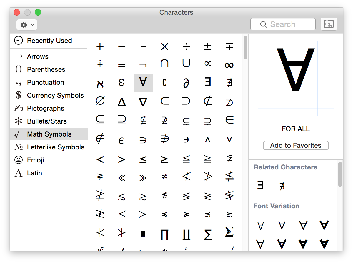 Is there a better way to generate characters like ∀ than by searching Google for "unicode universal quantifier" and copying?