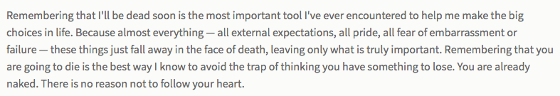 @paulg this echoes Steve Jobs abt how death/(life is short) is the most important tool to help make big life choicespic.twitter.com/LttBiVBRjP