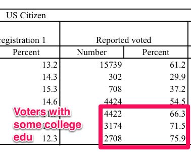 about 2/3rds of voters ages 65-74 have some college edu http://www2.census.gov/programs-surveys/cps/tables/p20/577/table05_5.xls … younger voters are even likelier to have edupic.twitter.com/1wDg9mFoxK