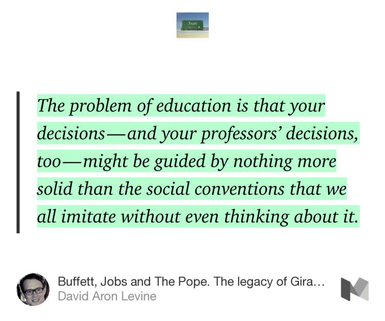 @peterthiel pointed out in his tribute to Girard, the issue is often with Education generally.https://twitter.com/davealevine/status/844222213008113664 …