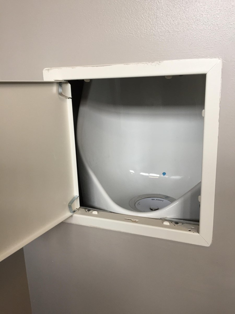 Those are waterless urinals. They don't work well and stink. That one got abandoned in place for some reason.