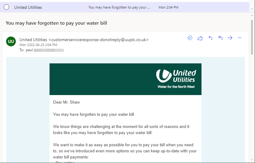 Might as well pay my water bill as well, seeing as United Utilities think I've forgotten about it. I hadn't. Just ignoring it for a month like I always do.pic.twitter.com/Wbb2RIPUGS