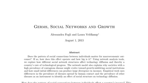 The Coronavirus made me think of the Fogli and Veldcamp paper on the Economics of the spread of germs and ideas (ResStud, Nov 2019). Very interesting work!