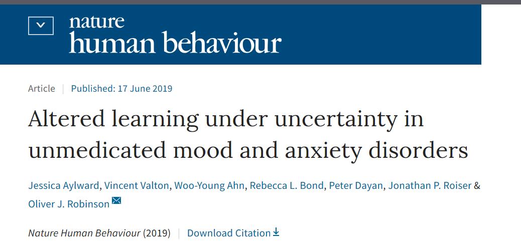 @NatureHumBehav 'Altered learning under uncertainty in unmedicated mood and anxiety disorders'. Very pleased with this one! (thread to follow!) 1/pic.twitter.com/d6Wzs7CQF4