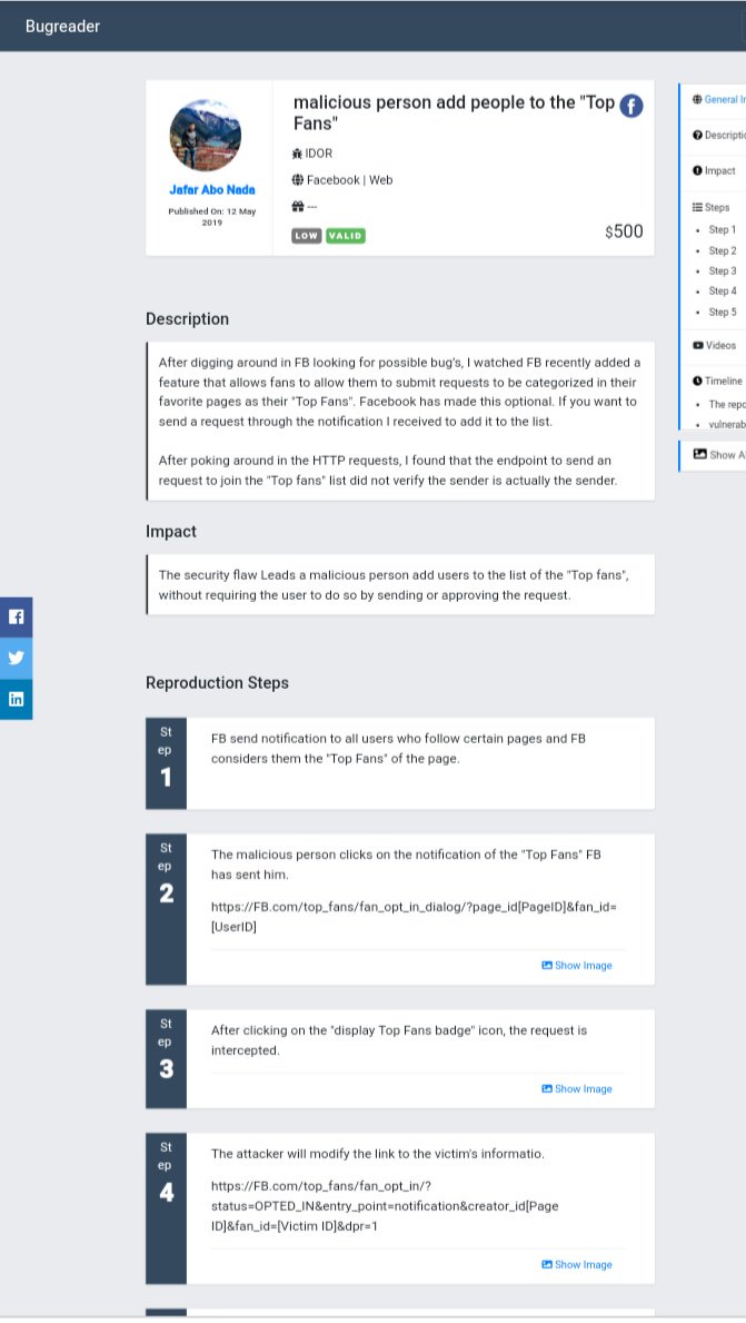 #bugbounty programs by@bazzounkassem > Nice UI and layout > Filter writeups by program, vuln type, bounty, etc. > Detailed description, Impact, Video PoC, Timeline and so on... http://bugreader.com pic.twitter.com/938Q26TK5J
