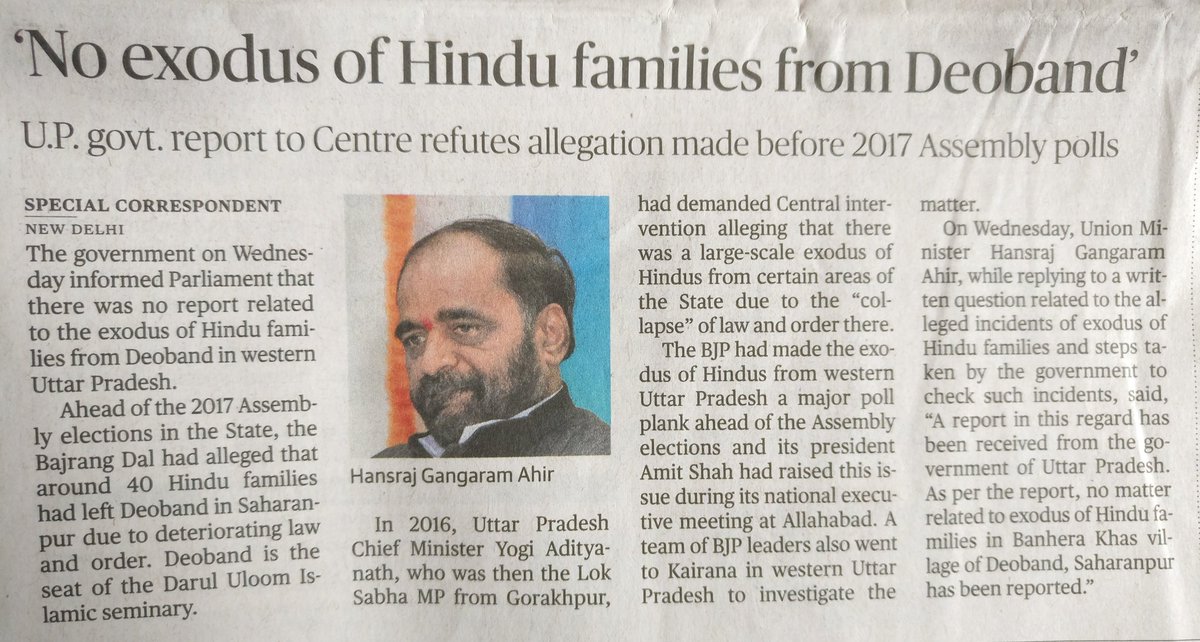 BJP leaders including Shah, spread fake news of Hindu Exodus from Deoband ahead of UP polls to communally polarise. Now govt has admitted that this was a false report. These examples can be multiplied endlessly. Don't fall for this hateful communal propagandapic.twitter.com/jUgjPLX7Tf