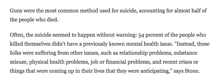 This didn't receive as much attention as it should have y'day: CDC says there's been a 30 percent rise in U.S. suicides since 1999 https://www.npr.org/sections/health-shots/2018/06/07/617897261/cdc-u-s-suicide-rates-have-climbed-dramatically …pic.twitter.com/RviZgl3Gmx