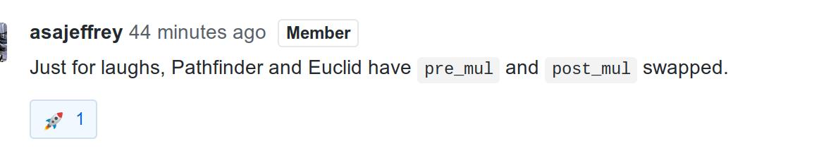 pre_mul and post_mul are terrible names for multiplication functions, there are two ways of interpreting each with the subjects swapped, making them completely useless namespic.twitter.com/SFojiQylvS