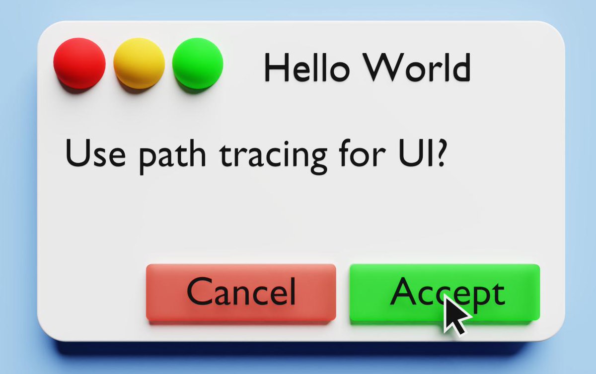 I had the silly idea of making a UI toolkit that used real time path tracing, but that would have been too much effort for a joke, so I settled for making a mockup in Blender. Rendering on my CPU takes 6 minutes per frame so it would need some optimization :Ppic.twitter.com/onkNzBa9fD