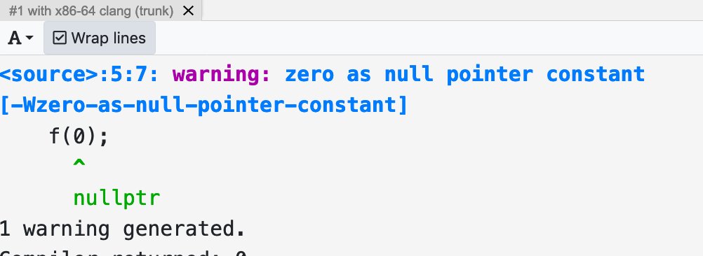 clang does have: -Wzero-as-null-pointer-constant godbolt: https://godbolt.org/z/rF9GAQ pic.twitter.com/dc7qXWhfBE