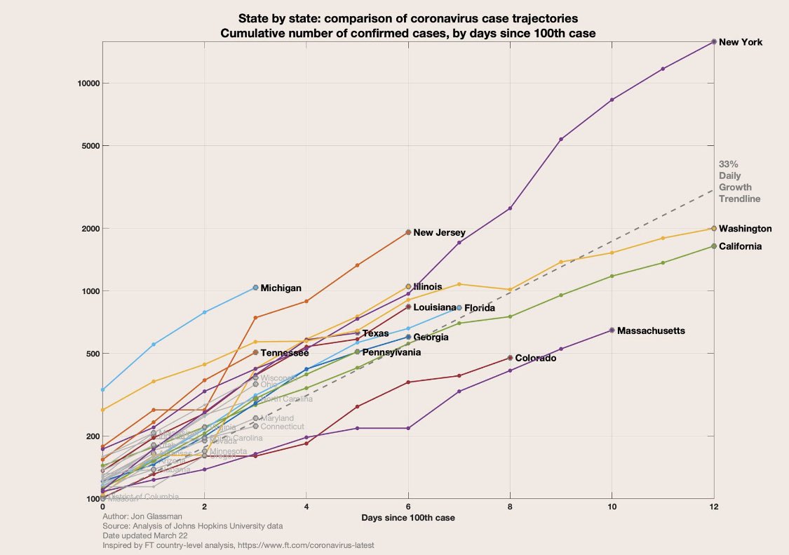 Big cluster of red states in the middle there that could either follow WA/CA or NY/NJ, depending on whether they start to take things seriously.https://twitter.com/michelle_mourad/status/1242302877831327745 …
