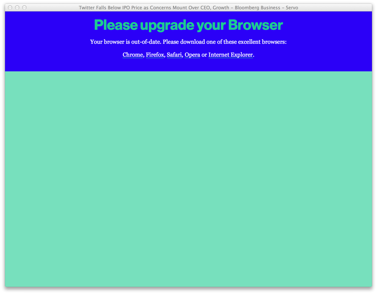 @pcwalton it failed this check: !window.CSSMediaRule && !window.matchMedia && !window.msMatchMedia;Thanks. Twitter will use this to make your timeline better. UndoUndo