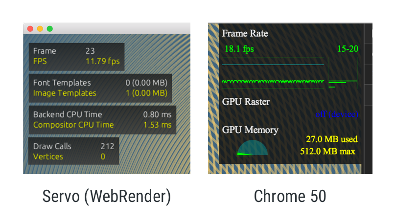 @pcwalton Hey, loved the talk on WebRender! I’m running here on my MBP based on https://www.reddit.com/r/servo/comments/46lvki/checkout_pcwaltons_talk_and_amazing_demos_of/d06v2b1 … No 60fps :(pic.twitter.com/cksWQ4n7d6