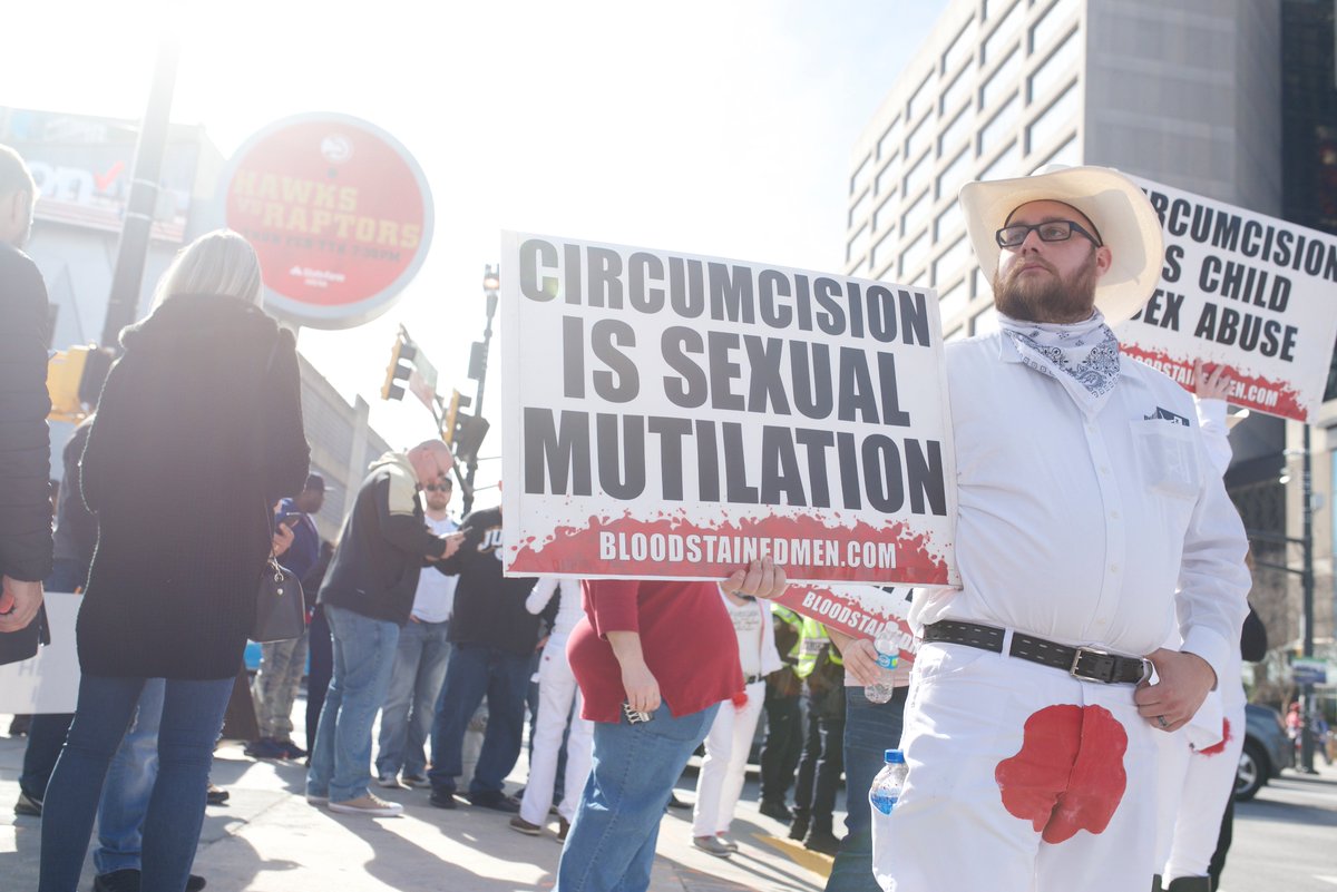 While I'm in Atlanta, I just filmed at an anti-circumcision protest. @IntactVoices / @Intact_Nation protesters show up to events like the Super Bowl to say that circumcision is "cruelty." I've never covered this subject before. Story later. Thoughts? Photos by @EllebySarahpic.twitter.com/EpmRMMeVH8