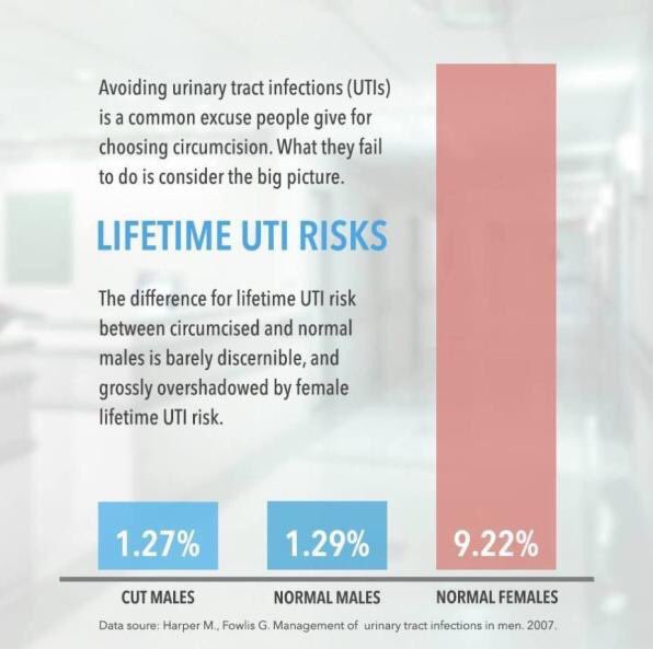This data applies to adult men only. There is a difference in UTI risk for children. Believe it or not, there are some children who need circumcision to stop their UTIs, especially if they have other conditions predisposing to infection