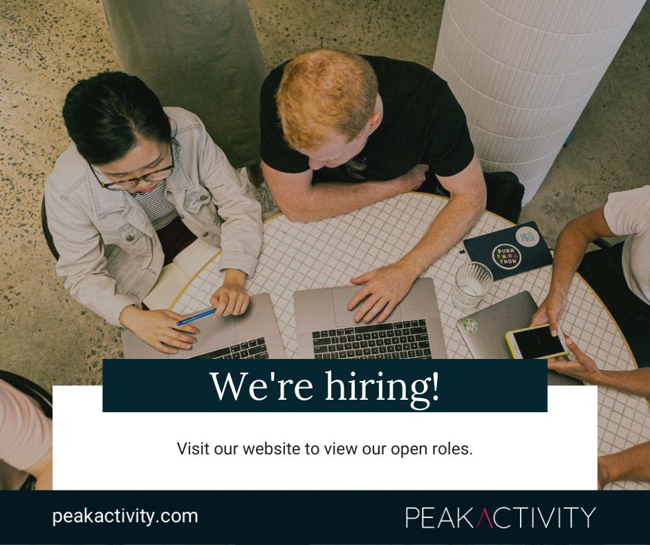 #hiring! We're searching for new Peaksters to join our growing team. Open roles include developers, UX designers, digital marketers, eCommerce specialists, business analysts, and more. Check out our Careers page for more info. https://peakactivity.com/careers/#techcareers#techpic.twitter.com/EOpQkZuloU