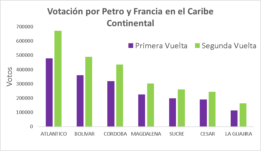 En la segunda vuelta, el Caribe le puso a Petro y Francia casi 2.600.000 votos. 685mil votos más que en la primera vuelta. El Caribe puso Presidente.pic.twitter.com/zQvKedbMdl