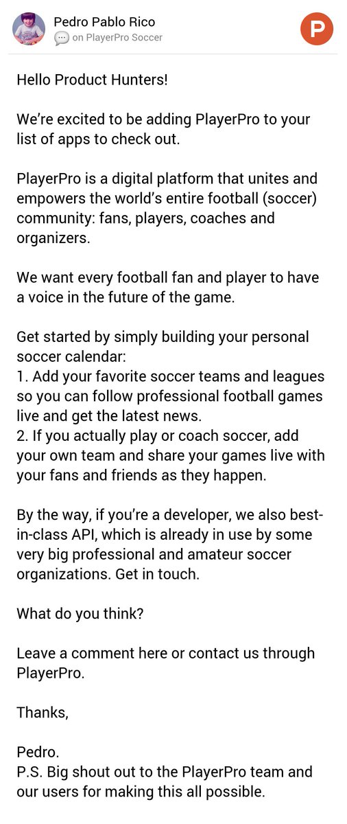 @ProductHunt https://www.producthunt.com/posts/playerpro-soccer#comment-426798 …pic.twitter.com/D5pPp1BbjB