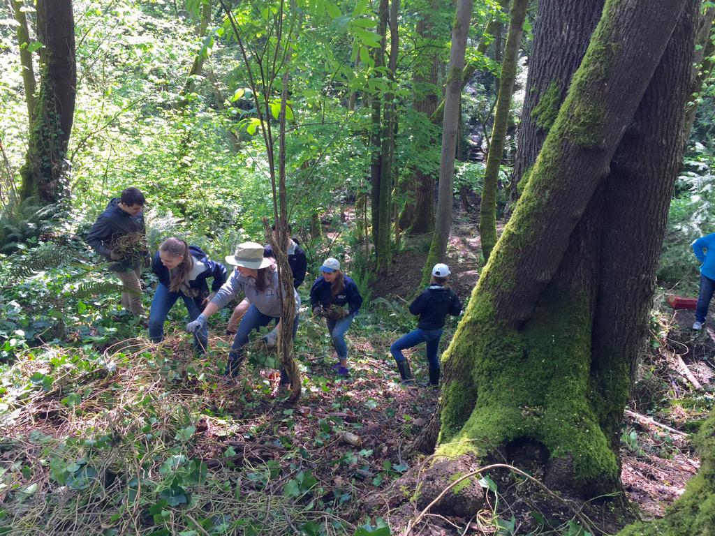 Am with large student group from @seaprep clearing ivy on embankment at Interlaken Pk for #EarthDay2015pic.twitter.com/WvnuBNYkD4