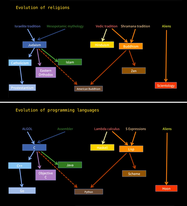 The evolution of #religion vs. the evolution of #programming languages. pic.twitter.com/cKHEZqjKEd