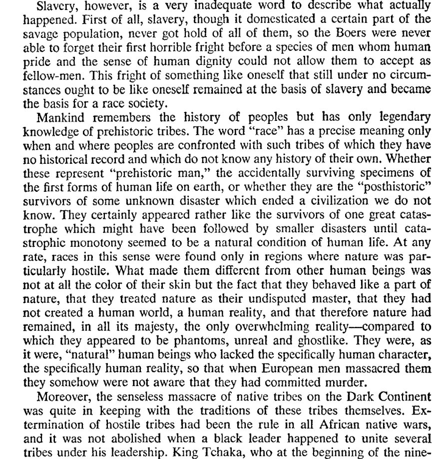 Hannah "the niggers in africa deserved colonialism because they were savages who never created anything and just fought each other so basically they weren't even human" Arendtpic.twitter.com/tv8eJd2Azy