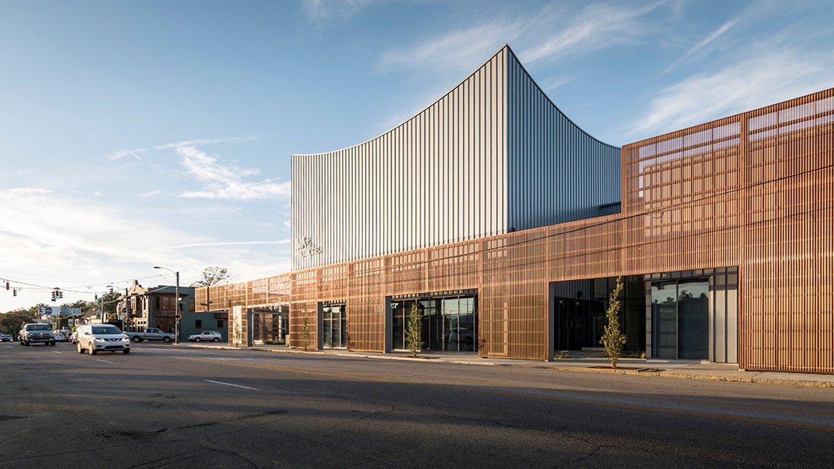 Ballet Memphis Theater by archimania The exterior form, composed of layers of glass, perforated copper, and volumes of contrasting metal evokes the character of a music box: http://arc.ht/2EJMcCU