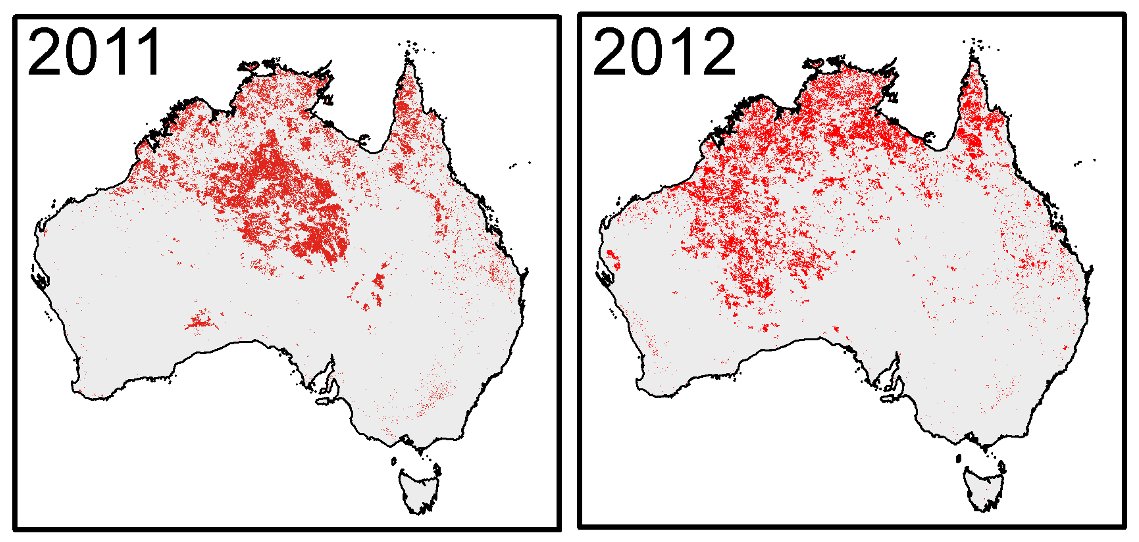 1/3 The largest ever recorded mega-fire season in Australia was in 2011, right after two consecutive wet years (La Nina), with about 100 million hectares burned across the continent, mostly rangelands. That is about 4 times the area of the UK, in one year.pic.twitter.com/8A4v48j2J9