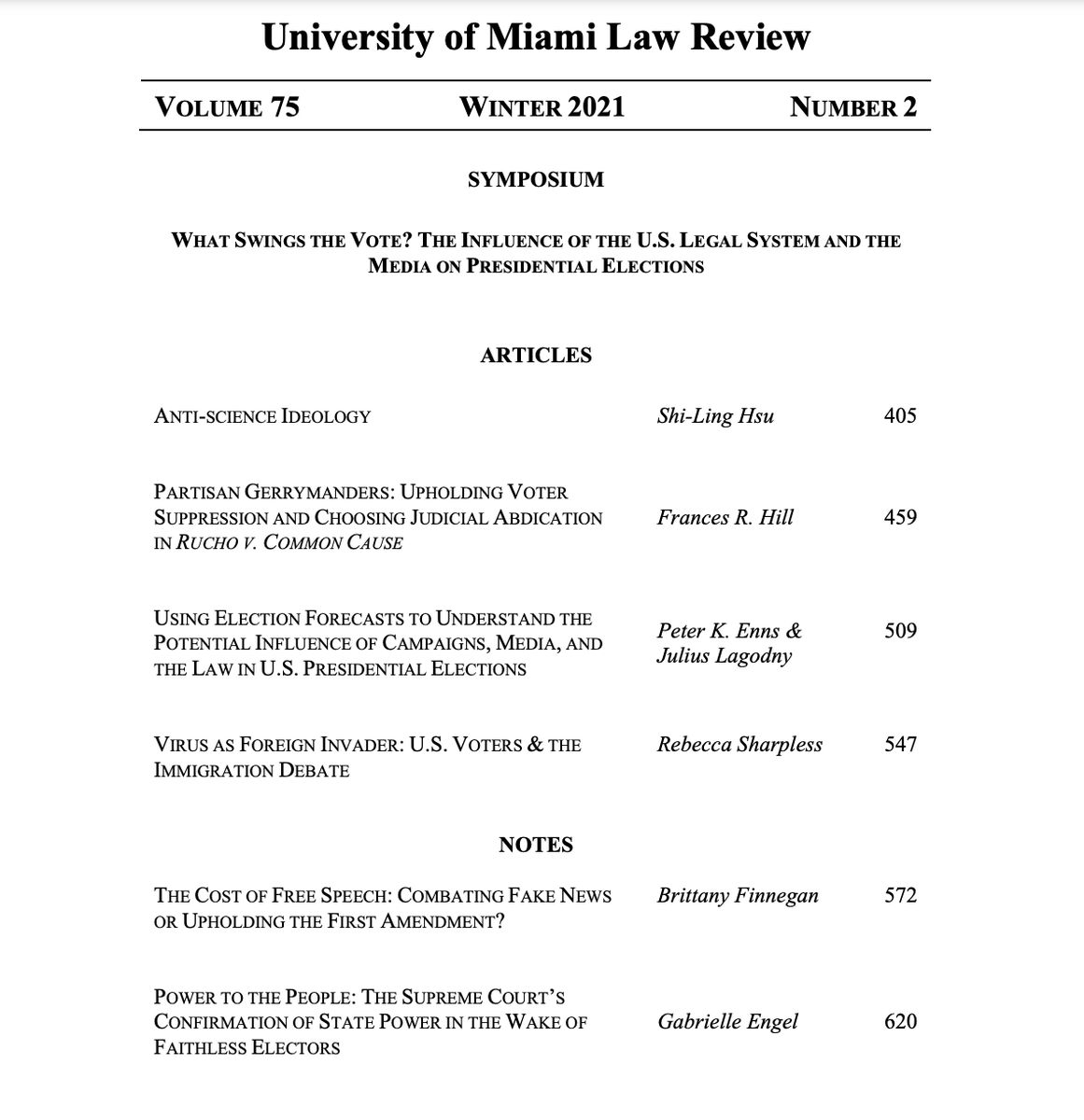 @JuliusLagodny in@UMLawReview: Using Election Forecasts to Understand the Potential Influence of Campaigns, Media, and the Law in U.S. Presidential Electionshttps://repository.law.miami.edu/umlr/vol75/iss2/5/#.YDesNnQTZMk.twitter …Thanks. Twitter will use this to make your timeline better. UndoUndo -
