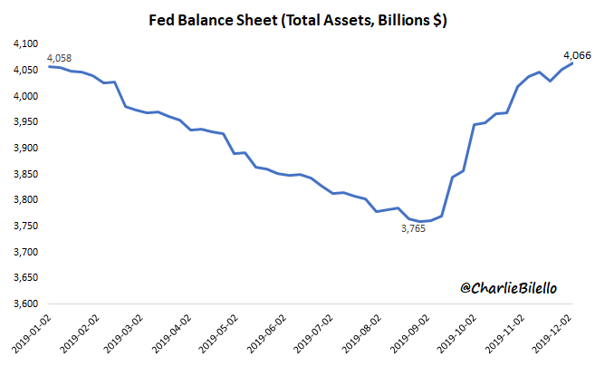 Fed balance sheet moves up to $4.07 trillion, highest level of the year, up $306 billion over the last 3 months. "In no sense is this QE. This is nothing like it." - Jerome Powell, Oct 8, 2019pic.twitter.com/G7T2UTzmTq