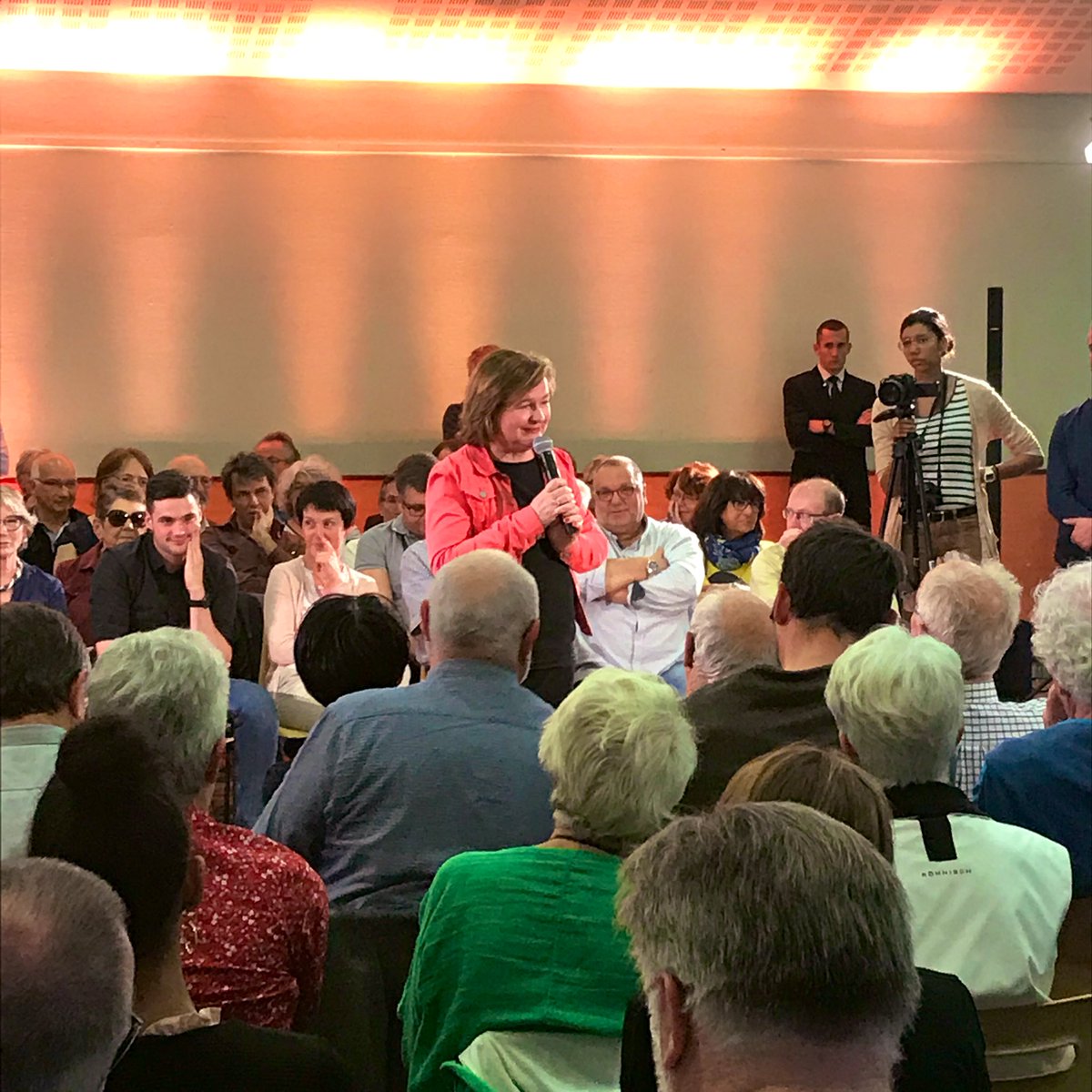 #Loiseau à Chalon-sur-Saône, devait se tenir à la salle des fêtes (800 places) mais elle a préféré réserver une salle de 150 places, le résultat a été le même...peu de monde pour écouter la tête de liste#LREM