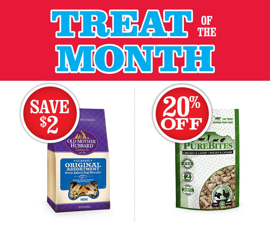 June Treat of the Month: Save $2 on Old Mother Hubbard Dog Treats 20 oz bags and get 20% off PureBites Freeze-Dried Cat Treats 26 g to 44 g bags.pic.twitter.com/gitRd28Nky