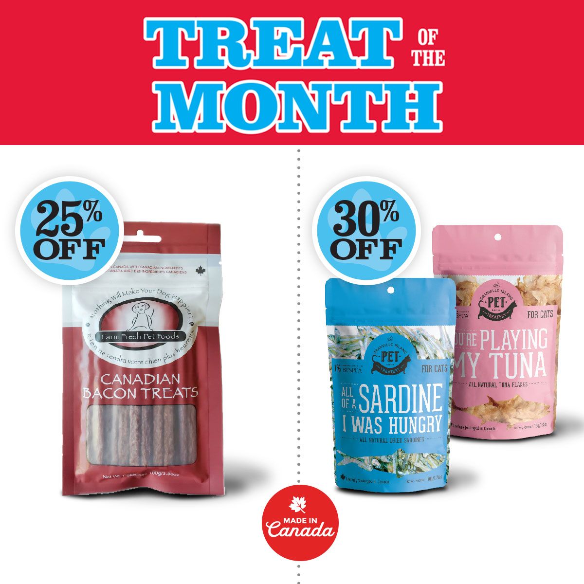 Save on our April Treat of the Month: Save 25% off Farm Fresh Dog Treats (100 g bags) and 30% off The Granville Island Pet Treatery Sardine or Tuna Flake Cat Treats (15-50g bags).pic.twitter.com/DH3zRrTMba