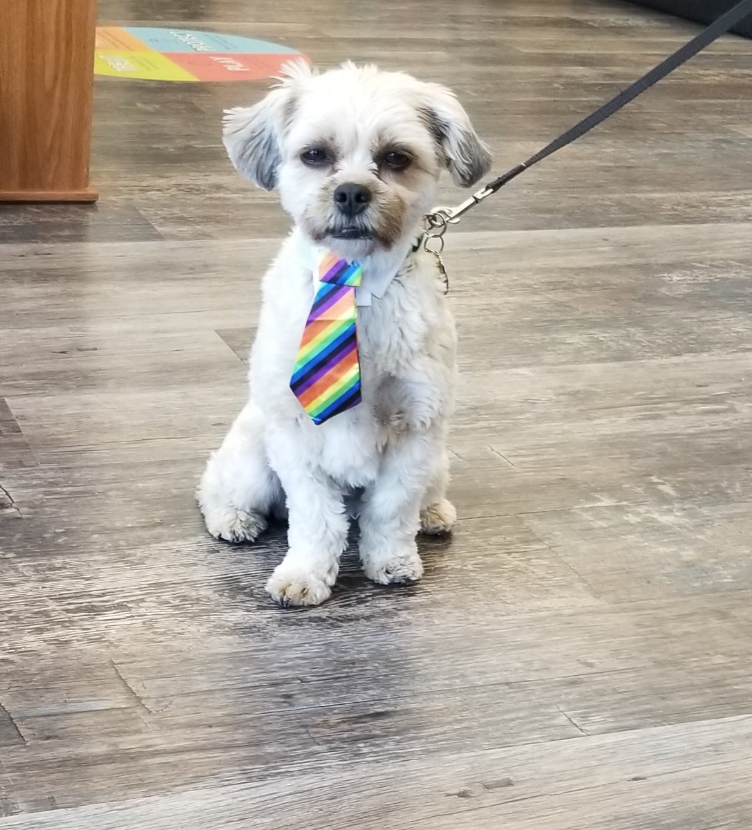 Just had to get him this rainbow tie from @petvalu he looks so cute! #rainbow #Pride #PrideMonth #love #SundayFunday pic.twitter.com/9qF46Ge0v0