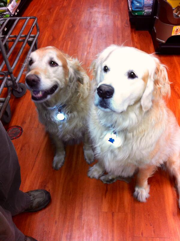Tucker and Harley showing off their new PetLits. Collar lights are a great way to stay safe on dark dog walkspic.twitter.com/bfRxrFajTx