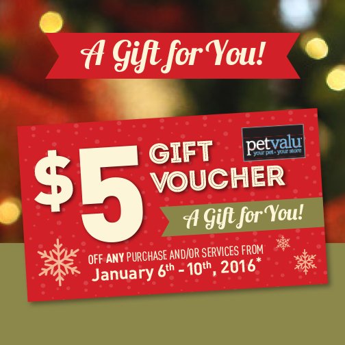 Shop with us from December 10-24 and for every $50 you spend, you’ll earn a $5 gift voucher. http://petvalu.com/flyer pic.twitter.com/7m2vXBCeef