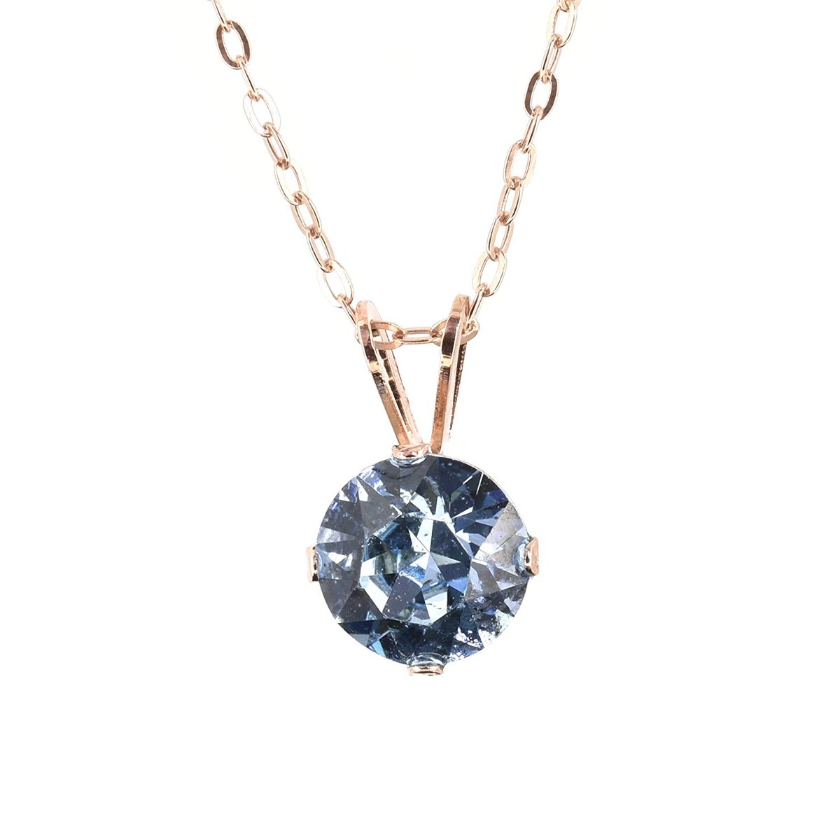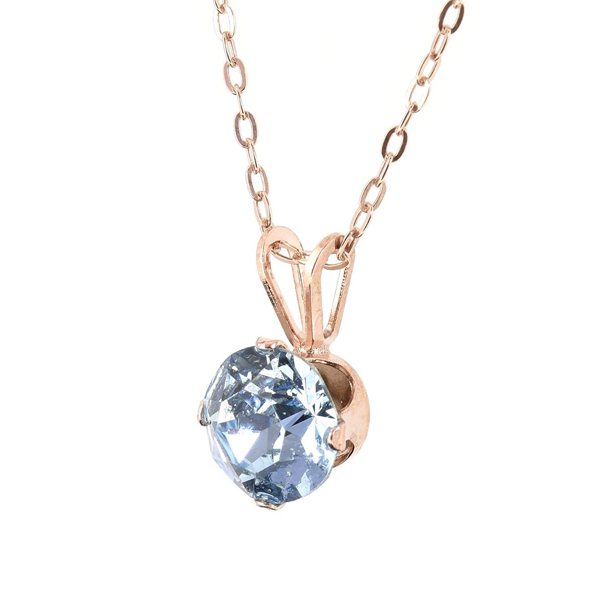 Pewterhooter Rose Gold on Sterling Silver pendant and 50cm chain for women made with single sparkling Aquamarine Blue crystal from Swarovski®.