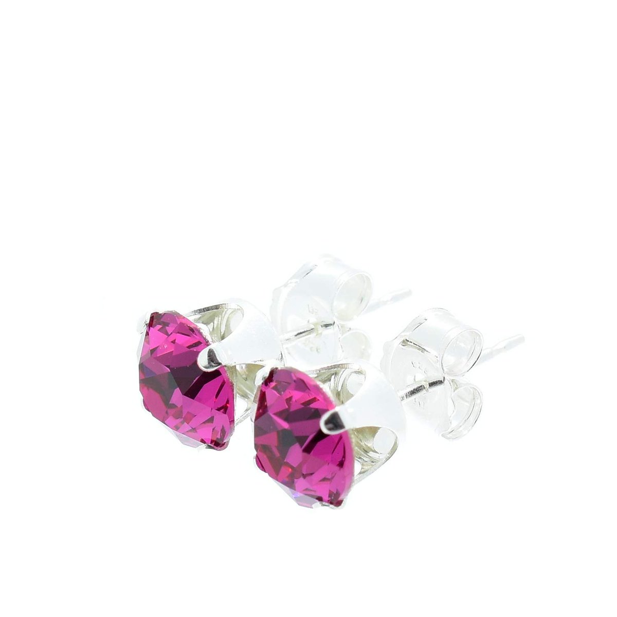 Pewterhooter Sterling Silver stud earrings for women made with sparkling Fuchsia crystal from Swarovski®